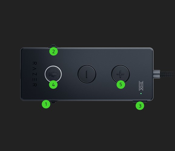 - USB dongle with Vol up/down, Bass up/down, THX Spatial On/Off*, Mic mute, Game/Chat balance*